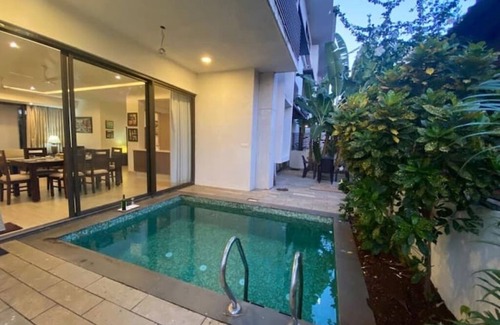 Wake up to loads of sun and views of the sunrise. Sip your cuppa in the balcony overlooking the greens or at your private pool side, in the evening enjoy your drinks with loved ones with mood lighting in living room with in-house music system and bar cabinet with essentials , or stroll to best cafes around. High standard linen and toiletries are provided to uplift the whole experience. Laze around or read a book while you relax in comfortable rooms. If you don't feel like moving out of the place cook your meals or ask care taker to cook ( care taker will get the supplies as per actuals) or Zomato/Swiggy (24 hours) your favourite cuisine and enjoy the meal at home away from home.