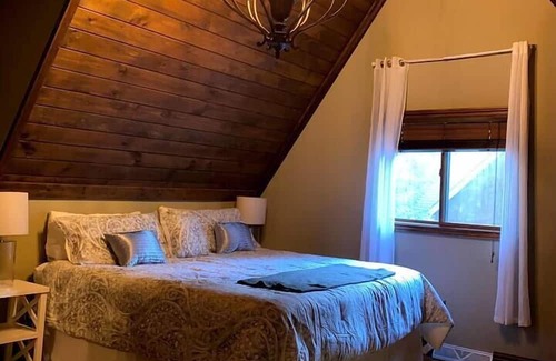 Welcome to Phantom River House, your secluded retreat just minutes from downtown Saratoga Springs, NY!! This beautiful A-frame style home offers the perfect blend of spaciousness and coziness, ensuring privacy even for larger groups. Step into the tranquility of the surrounding woods and enjoy the warmth of the custom stone fire pit, or soak in the beauty of nature from the expansive deck overlooking the lush landscape!