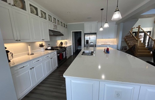 There’s also a basement family room for movie nights or rainy-day games, and the attached suite is perfect for giving part of the group their own space.