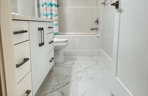 Inside, you’ll find a bright and cozy living space with large windows that bring in plenty of natural light. Each bedroom is comfortably furnished, with the master featuring an ensuite bathroom. The modern design, wood-style flooring, and thoughtful touches make this space feel warm and inviting.