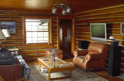 Beautiful classic log home 3 blocks from Main Street in quiet neighborhood with mature trees and plenty of parking space for your boat. Your dog is welcome to come on vacation with you! Wood burning stove in living room for chilly nights. Fully equipped kitchen with large dining area. Large master bedroom with bathroom, 2 additional bedrooms share second bathroom.