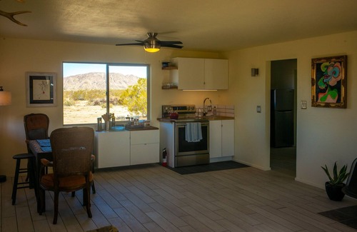 Take a break and unwind at this peaceful oasis. Located on an expansive 6 acre lot with magnificent views of Goat Mountain. Minutes to the Integratron, La Copine, & Landers Brew. Down the road from Pioneertown, Yucca Valley and Joshua Tree. This historic mining homestead built in the 1930's was later occupied by the infamous George Van Tassel while he constructed the Integration.