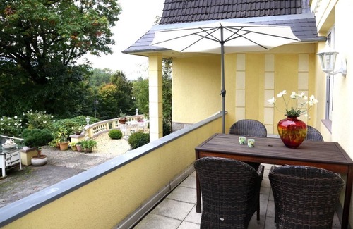 You'll never want to go on holiday anywhere else again. Just outside the renowned spa town of Bad Pyrmont lies the modern renovated holiday home Villa Rosenhof. The holiday flats are classified with 5 stars and are located 3 minutes by car from the centre. In the Villa Rosenhof we offer you very nice, spacious flats, from 80 m² to 90 m², with one or two bedrooms, large kitchen, dishwasher, living room, shower room / WC and WLAN. You can relax in the sun or in the shade of the lime trees on the outdoor terraces and balconies. Many excursion possibilities in the neighbourhood: Hufeland Therme - the spa and wellness bath with tradition, hiking and Nordic walking in the most beautiful surroundings, a charming landscape for cyclists, Bad Pyrmont, a golfer's paradise. The view is unobstructed with a view of the beautiful Weserbergland. Breakfast can be booked on request. Please let us know when you book! We provide a car park for each flat, garage for an extra charge. Washing machine and tumble dryer are available in a separate room for a fee. Bicycles for adults and children can be hired from the landlord. Public charging stations for electric cars are located about 500 metres away at the Huddelbusch petrol station. The satisfaction of our guests is our greatest concern.
