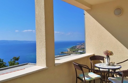 The apartment also features a beautiful, large balcony with a stunning view of the sea and Omis town and its surroundings. The balcony has outdoor furniture. Wi-Fi, SAT/TV and air-conditioning are available as additional amenities.