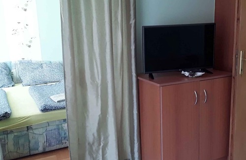 The holiday apartment is located in an apartment house, built in 2000, renovated in 2020 and is modern and functional furnished. The property is located in a holiday home area. The domicile is also popular because of the quiet location. For common use are available:LocationHajdúszoboszló. The holiday apartement is located on a closed garden plot with meadow, flowers, bushes and trees, limited by a fence. The landlord does not live in the house or on the property. The access goes via a side road (asphalted). Parking lot (for 3 cars) on the property. SpecialAir conditioning / heating: air conditioner, central heating (gas). Facilities: internet access (WLAN). TV reception takes place via electric wire. Dogsallowed, EUR 10.00/pet per day. DistancesShopping opportunity 150 m (in the winter 150 m), restaurant 150 m, town center 1000 m. Hajdúszoboszló: railway station 3,4 km, indoor swimming pool 700 m and thermal bath, sauna each 750 m. Railway line 3,4 km.In summer: Bathing possibility 350 m in Hajdúszoboszló (beach 350 m in Hajdúszoboszló with meadow). Hajdúszoboszló: fishing 1000 m, mini golf 150 m, tennis 200 m and horse riding 3 km. DivisionHoliday apartment, 2 floors, 2 rooms (including 1 bed rooms), 40 sqm, in total 4 beds (including 2 additional beds). RoomThe entrance in your holiday apartment is located on different floors and leads over 2 stages directly in the vestibule. Living room with 2 extra beds on double sofa bed and TV. Bedroom with 1 double bed. Kitchenette with electric stove (2 plates), fridge (icebox), microwave, coffee machine, toaster and electric kettle. Bathroom with shower, 1 sink and WC. Terms of lease and pricesIncluded in the priceparking place, electricity, gas, water, final cleaning, bed linen, Wireless Internet access. Side costs-Costs on the spot:/Obligatory:air conditioning 10 € per object per day. local tax by local tariff.Deposit:No deposit.