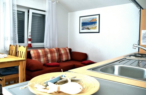 The holiday apartments are quietly situated by the edge of a forest and near the sea (100 metres) on a side street with little traffic.