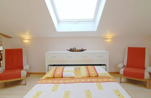 Our 98 m2 non-smoking apartment offers comfortable space for 2-4 people with a double bed in the bedroom and a double bed in the living room (expandable to 6 people with an additional sofa bed) A fully equipped kitchen with stove, oven, dishwasher, coffee machine, toaster, kettle and microwave is at your disposal The holiday apartment has satellite TV and a DVD player in the living room as well as a bathroom with a bathtub and a south-facing balcony with mountain views (access from the kitchen) and a large west-facing balcony (access from the living room). Parking spaces on the property Bed linen suitable for allergy sufferers is available. This is a non-smoking holiday apartment on the top floor of a detached single-family home No pets allowed