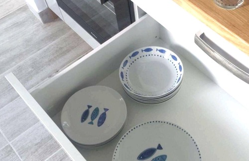 The flat has both a balcony and a private garden (for the exclusive use of our guests) with an area of 55 square metres with terrace and barbecue. Garden furniture (tables, chairs, armchairs, loungers) is available both on the balcony and in the garden. You have your own car parking space in front of the entrance/garden. You can park another car safely and free of charge on our enclosed grounds at the gatehouse.