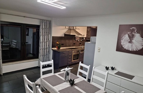 Enjoy your holiday in a newly renovated holiday home which offers space for 4 people (additional installation of baby cot possible.) The holiday home is situated in a quiet location on a lockable property on the outskirts of the Fachwerkstatt Schmalkalden in wooded surroundings. Hiking trails and meadows begin in the direct neighbourhood of the property. Ideal for excursions with your four-legged friend. Parking facilities for cars or motorbikes in the neighbouring carport.