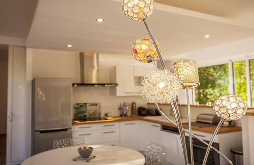 The Villa Océane stands out for its unusual design: the living room is entirely glazed with sliding windows, giving the impression of living in nature. The rooms are separated by sliding partitions. Designer furniture.