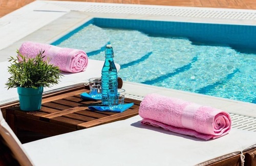 There is a big private swimming pool for relaxing in this idyll, and there is also a grill. From here you can enjoy a breathtaking view of the sea or the stars with a cool drink.