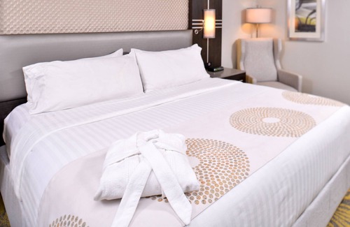 An indoor pool, an outdoor pool, and a restaurant are available at this smoke-free hotel. Free WiFi in public areas, free self parking, and a free area shuttle are also provided. Additionally, a 24-hour fitness center, a sauna, and a 24-hour business center are onsite.