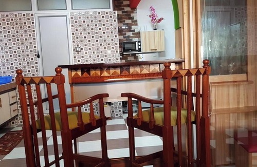 Inside the apartment, you will find a bright and open living area where modern design meets functionality. The living room features a comfortable sofa with an option for additional sleeping arrangements, making it ideal for relaxation. The kitchen is fully equipped with all necessary appliances and cooking facilities.
