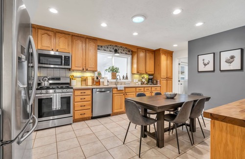 Gather around the fireplace as you watch the greatest snow on earth fall outside your door- teasing of what's to come on the ski slopes the next morning! While the fully updated backyard has all the amenities you could hope for to make this trip a memorable one. To name a few, a Ping Pong table, Corn Hole, and a Frisbee golf goal!