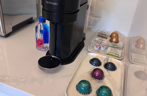 The kitchens are equipped with induction stove top, dishwasher, sink, Nespresso & coffee bar, Ninja air fryer, & Breville convection countertop oven in lieu of a built-in oven.