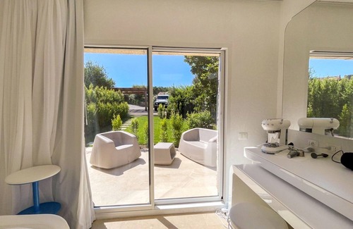 Beautiful, comfortable holiday development "Puntaldia". 10 km from the centre of San Teodoro, 300 m from the sea, 400 m from the beach, on the golf course. For shared use: large, well-kept garden (not fenced) with lawn and plants, lawn for sunbathing, swimming pool (25 x 10 m, seasonal availability: 15.Jun. - 15.Sep.). Outdoor shower, tennis (extra), children's playground. In the complex: bar, bistro, shopping facilities, boutique. 20 m long motor access to the house. Supermarket 200 m, bus stop 9.3 km, sandy beach 300 m. Marina 300 m, golf course (9 hole) 300 m. Nearby attractions: Aeroporto Olbia - Costa Smeralda 23 km, Porto Isola Bianca 30 km. Please note: car recommended. Common areas (tennis court, padel court, swimming pool, ...) are available only durnig medium and high season.
