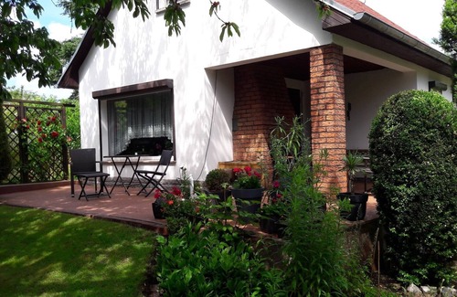 This comfortably furnished, single family style house is available to visitors all year. It is situated on an immense 800 sq m property surrounded by gardens, which despite its size is still centrally located. A pool assures refreshment during the summer, and on cooler summer nights, an open fireplace on the terrace assures a cosy atmosphere. In the house there is a modern air conditioning system. The Metro line M6 can take you directly into the city centre. A parking space in the garden of the holiday home is at your disposal at no extra charge. We recommend our holiday home to everyone who does not want to be confined to a narrow, expensive hotel room, but rather would like to move about freely and enjoy nature.