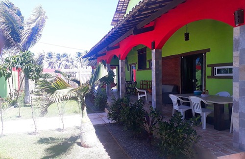 House all in rustic style, has a complete structure for your best stay. The house has 5 suites all with AIR CONDITIONING, PRIVATE BATHROOM WITH HOT SHOWER and LED TV, service area, full kitchen, two social bathrooms, recreation area with barbecue, sun loungers and super shower, surrounded by a beautiful garden and views. the sea. In addition, the master suite has a balcony overlooking the beach, where you can enjoy the sunrise and the beautiful moonlight of the beach of the future.