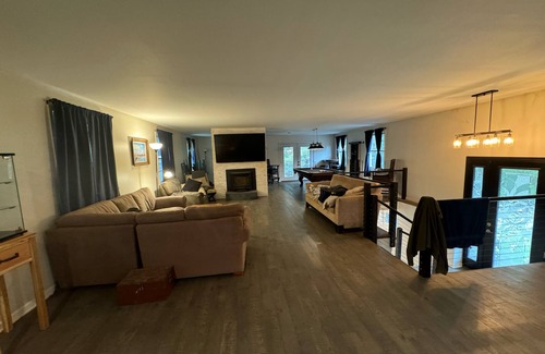 And the House of Gunn is the perfect retreat for it. No need to brave the cold when there is so much to do right here. Shoot pool or play foosball in the main room or retire to the game room and bar for ping pong, or just select a board game from my constantly growing collection. Just looking to relax? Curl up on a sofa in front of the pellet stove and enjoy the 75" Roku TV. Relax on the raised patio with the heaters or at the fire pit with your friends.