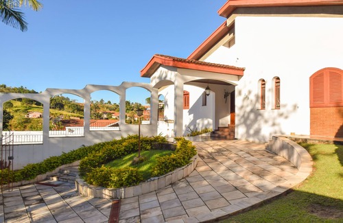 Large and airy house with 1,000 m² and ideal for gathering the whole family. Comfortably sleeps 26 people. In all there are 9 bedrooms (4 are suites), 6 bathrooms, 1 toilet, plus kitchen and fully equipped kitchen. It also has a huge balcony, fireplace, conservatory, 3 rooms, swimming pool, barbecue and garage for 8 cars. Located in one of the highest neighborhoods of Águas de Lindóia - with a beautiful view of the mountains - and just 2 km from Adhemar de Barros Square, central city.