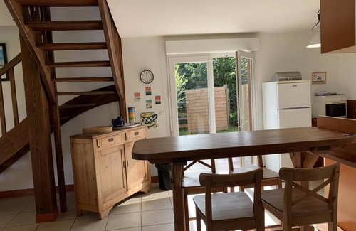 Ground floor : - living space of 56 m²: - living room with TV, LCD, TNT, DVD, wifi, telephone, - open fitted kitchen (dishwasher, microwave, freezer), - cellar (washing machine, dryer), - 1 large bedroom (1 double bed 160 cm). Upstairs : - living room with convertible on landing, - 1 bedroom (1 double bed 160 cm), - 1 bedroom (2 single beds), - wc, - bathroom (bathtub 180). Between valleys and seaside resorts, we will have the pleasure of welcoming you in peace. Gite adjoining another gîte (N ° 1017) with open garden. Private wooden terrace facing south.
