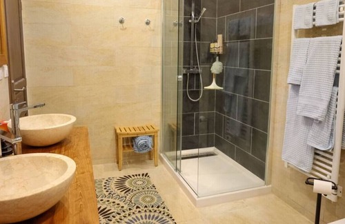 The house is an old barn with a very bright modern extension, a judicious mix of old and contemporary. It consists of a large living room opening onto a fitted kitchen and a lounge, two bedrooms en suite with shower room and toilet. Outside, in a beautiful environment, a large terrace with its barbecue and garden furniture, as well as a beautiful and large swimming pool with overflow to refresh.