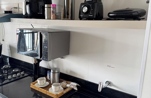 Netflix assinatura, Wi-Fi, cama queen, sofá cama, ar condicionado, roupas de cama e de banho, fogão Cooktop, geladeira, forno elétrico, microondas, sanduicheira, cafeteira, varal de chão, produtos de limpeza, copos de vidro, taças de plástico para levar para a piscina, talheres, varal de chão, secador de cabelo, xícaras e utensílios básicos de cozinha e de limpeza. Contamos com uma vaga de garagem, caso queira favor solicitar após a reserva nos informando a placa e o modelo do veículo.