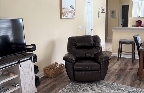 This Villa has a fresh coat of paint ( looks gorgeous) with double reclining leather couch and a single recliner.