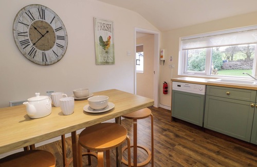 Amenities: Electric central heating. Electric oven, induction hob, microwave, fridge, dishwasher, toaster, kettle. Freeview TV, pool table, and WiFi. Fuel, power, and starter pack for woodburning stove inc. in rent. Charging for electric cars is not included. Bed linen and towels inc. in rent. Highchair and travel cot available on request. Private driveway parking for 4 cars. Enclosed front patio with furniture. Enclosed rear garden with lawn and furniture. Four well-behaved dogs welcome. Sorry, no smoking. Shop 1.1 miles, pub 1.3 miles, river 0.8 miles. Note: £20 pet fee per dog. Note: Dogs to be kept under control in rear garden. Note: Open-tread staircase, please take care