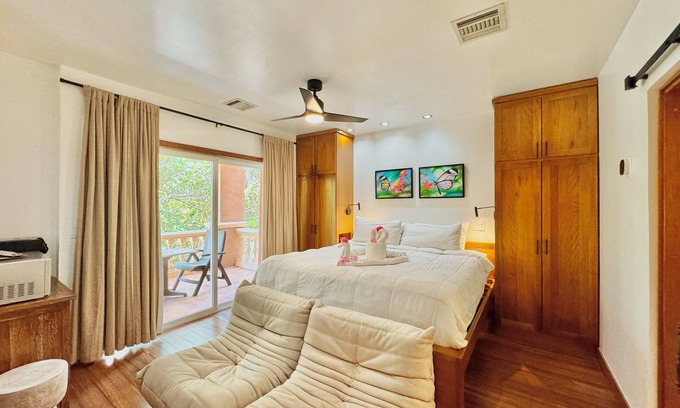 Enjoy tropical drinks on your private balcony or step right onto the beach. Take a few more steps and dive into the beautiful ocean. Nearby you'll find the gorgeous pool and the adjacent palapa covered bar with delicious concoctions, fresh seafood and more.