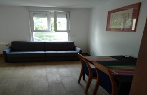 Layout: On the 1st floor: (Living room(double sofa bed), Kitchen(stove, electric kettle, toaster, coffee machine(espresso), microwave, fridge, electric hot plates, dishes and cutlery, Cooking basics), bathroom(Hot Water, shower, washbasin, toilet, hairdryer, Towels/Sheets (Incl.), shampoo)) Internet Access DSL, Wardrobe, storage, First Aid, Play area, heating, Essentials, Dedicated workspace, Carbon monoxide detector, Cleaning Disinfection, Enhanced cleaning practices, High touch surfaces disinfected, Roll-in shower with shower bench or chair, Room-darkening shades, Town