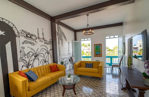 Welcome to Isabela Plaza Grande!!! With room for 18...enjoy our fully remodeled 9 bedroom 5 bathroom apartment with wifi, washer/dryer, large open spaces and balconies overlooking the plaza and ocean from our huge rooftop deck. Minutes from Shacks, Jobos, Middles beach, join in the plaza's weekly salsa dances, boutique fairs, music venues, and tons of local delicious restaurants. Surfing, biking, snorkeling just down the street!!