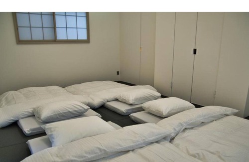 All rooms are equipped with a kettle and some rooms have a kitchen with a microwave refrigerator and stove All rooms in machiyado Kuwanajuku Edomachi 21 are equipped with bed linen and towels / This quadruple room has air conditioning microwave and kitchenware
