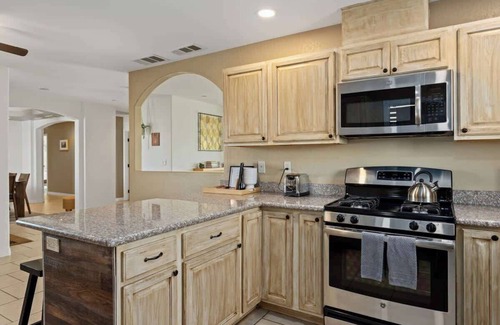 Located minutes from the famed Joshua Tree National Park, our 3 bdrm, 3 bath home is your perfect desert getaway! Tastefully decorated to match the lush setting, our spacious and open house has everything you need to have fun with the whole group. Go for a hike in the gorgeous National Park, or visit the local shops and restaurants that downtown Joshua Tree has to offer!!