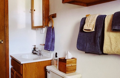 With accommodations for up to 6 people, this private unit is the perfect place to unwind and enjoy all Sitka has to offer. The master bedroom has a queen and a double bed, and the second bedroom has a queen bed. The living area includes a couch and loveseat and flat screen, smart TV with Netflix, Hulu, etc. (no cable). The small kitchen has a stove, microwave, refrigerator, toaster, coffee maker, as well as cookware and flatware.