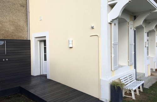 The ground floor of the house consists of a kitchen, entrance hall, WC, dining-living room, bedroom with double bed and private shower room / WC. It is accessible to people with reduced mobility (PRM) using a ramp.