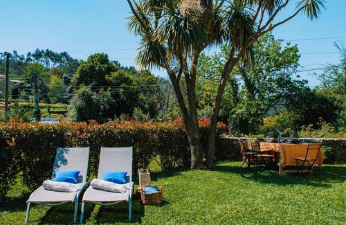 House for 6 persons Despite being an old farmhouse recovery, this house is resolutely modern, clean and presents innovative design solutions. The integration of some family pieces, recovered furniture and works of art give it personality and a pleasant and intimate atmosphere. The kitchen, dining room and living room are in open space, with east-west orientation. Sunlight is never lacking in this house, as well as the wonderful view over the Minho River. It has two bedrooms, one with a double bed and the other with two single beds and two drawers. They are supported by a full bathroom with shower. The state-of-the-art window frames and the exquisite insulation of ceilings and walls provide all the thermal and acoustic comfort necessary for rest.Around the house there is a small private garden, with its own outdoor furniture, where it is possible to relax, sunbathe or simply enjoy the silence.There is also the pool area, shared with Casa da Helena and the Suite. . Here one has the feeling of being in a luxury resort, whether diving in the blue waters, sunbathing on the lawn or having a meal in the shaded pergola.This house can be rented on its own or together with Casa da Helena.
