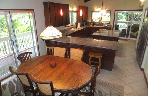 The gardens surrounding the house have been lovingly landscaped with dozens of varieties of tropical flowers and foliage. The scent of pikake, plumeria, and gingers waft through the house on the gentle island breeze. You will find the beautiful and unusual heliconia flowers in an amazing variety of colors and shapes.