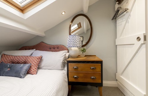 With a 4'6 double bed, chest of drawers, storage space underneath the bed and hanging rail. Please be aware due to the small but perfectly formed nature of the cottage, one side of the bed has no bedside cabinet.