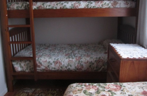 Basic original family bach in the Golden Circle (built in 1952 with extensions added over the years). Short walk to estuary beach or shops and cafes. Small bedrooms - Queen bed in one and a single bed plus single bunks in the other (please note that children under 9 years old must not use the top bunk - per Ministry of Health). Shower is over bath. Has deck with outdoor furniture and barbecue and views of the ocean. Water is tank water so we are unable to allow washing of boats or cars. Just bring your clothes, food and drinks and look forward to enjoying yourselves.