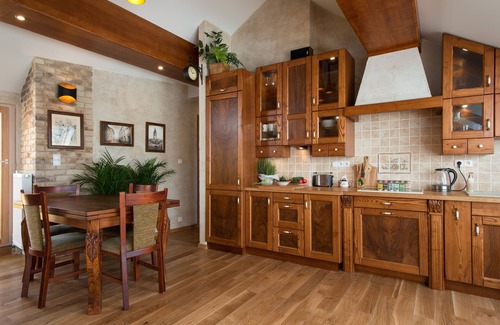 Despite its location in the centre of Krakow, this third-floor apartment offers peace and quiet with its windows overlooking the Old Town. Its interior design: the subdued colours of the walls with decorative stone elements, the original parquet floor and wooden furniture, has been adapted to the history of the building. The apartment consists of 3 rooms, a kitchenette and 1 bathroom.