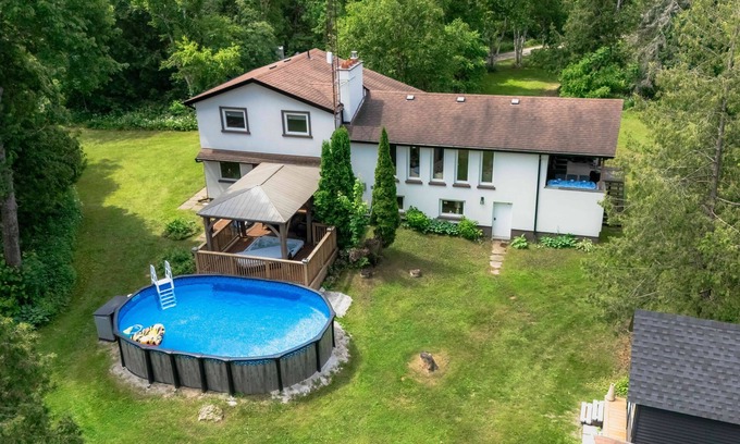 Wake up to birdsong 🌲 and sip your coffee surrounded by peaceful forest views. This private 20-acre escape in Innisfil is your family’s playground for rest, reconnection, and relaxation. Swim, soak, explore—your unforgettable getaway starts here.