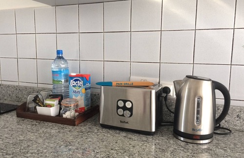 - Kitchen equipped with refrigerator, gas stove, micro-wave oven, electric kettle, , toaster, crockery, cutlery and small accessories.