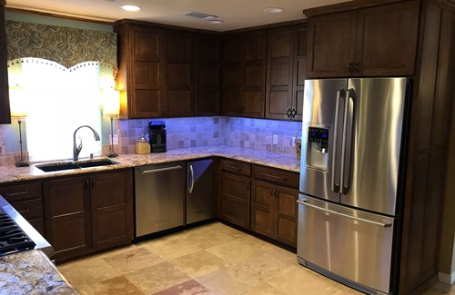 The house also boasts 3 living/gathering areas with a pool table and foos ball table, a large kitchen with commercial grade luxury appliances, a separate wet bar/full refrigerator, and 2 extra large patio areas directly on the lake and off of the main living area. There is a large boat dock with electric lift. This fabulous home is located within walking distance from many restaurants and is just a 5-10 minute drive from most places in town! We offer free high speed WIFI and Uverse cable, with flat panel televisions in all rooms. This home is ideal for a disabled or elderly individual with majority of the living space on one level. There are 4 icemakers, 3 heat/air units, 2 water heaters, 3 indoor dining areas, 1 outdoor dining area, high capacity front loading washer and dryer, and 4 1/2 bathrooms making this home not only comfortable to sleep in but also very comfortable to actually live in during your stay!