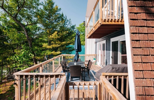 As you venture outside, you'll be captivated by the natural beauty that surrounds you. The expansive backyard leads directly down to the pristine lake, where endless water activities await. Dive into the clear waters for a refreshing swim, cast your fishing line and reel in the catch of the day, or hop aboard a paddle board or kayak or rent our pontoon for use during your stay.