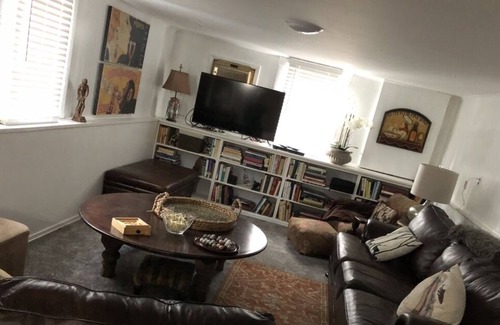 Living room , large media room w streaming services, large sunroom for relaxing.
