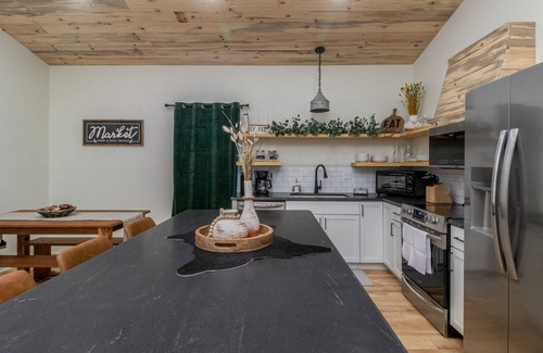 This barndominum can sleep up to 7 (with additional child accommodations) and is 10 miles to Choctaw Casino and 20 miles to Lake Texoma. The barndominium is a 3/2 and includes a King bed in the Master Bedroom, a Queen bed in the 2nd bedroom and one bunk bed (twin/full) in the 3rd bedroom. The living room/kitchen is an open floor plan with a full functional kitchen. There are two full bathrooms. The laundry room offers a full size washer and dryer if needed. NO PETS ALLOWED.