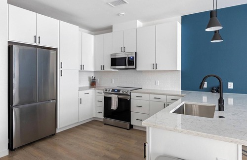 Discover your creative side at akin Golden Triangle, tucked into Denver’s vibrant art district near Speer Blvd, Cherry Creek Trail, and some of the city’s best museums and galleries. Perfect for flexible, monthly, or extended stays, our fully-furnished community blends downtown energy with upscale comfort. Your apartment features a full kitchen with quartz countertops, modern appliances, and a full-size washer/dryer.
