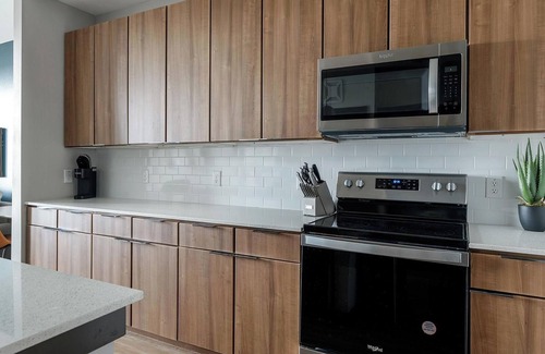 Stay minutes from Downtown Kyle and Plum Creek Golf Course at Brick and Mortar District, your stylish, pet-friendly retreat just off I-35. Perfect for flexible, monthly stays, each fully-furnished apartment includes a full kitchen, stainless steel appliances, and granite countertops. Enjoy resort-style perks like a rooftop lounge, Zen garden, fitness center, and dog spa, or connect with neighbors at La Verde Park, featuring sand volleyball, hammocks, a playground, and an amphitheater.