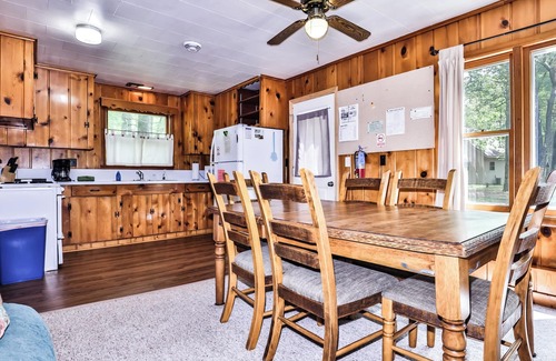 This rustic looking cabin has one full bath with tub/shower. As a special feature, this cabin has a clothes dryer to dry those beach towels or snowmobile gear.